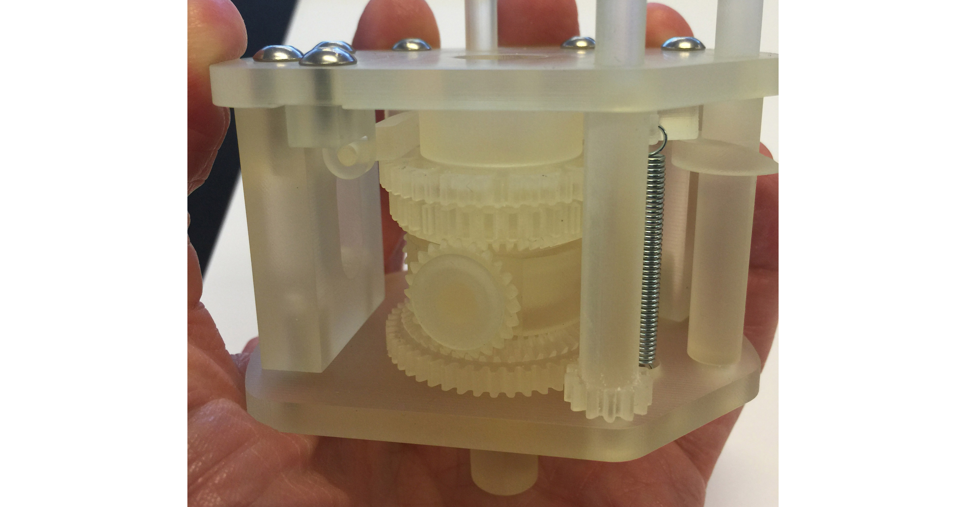 With high enough resolution (e.g., HD3 from ProtoCafe as shown below), 3D printed gears can run together smoothly and serve as a useful development tool. For instance here's a contraption I built a few years ago.