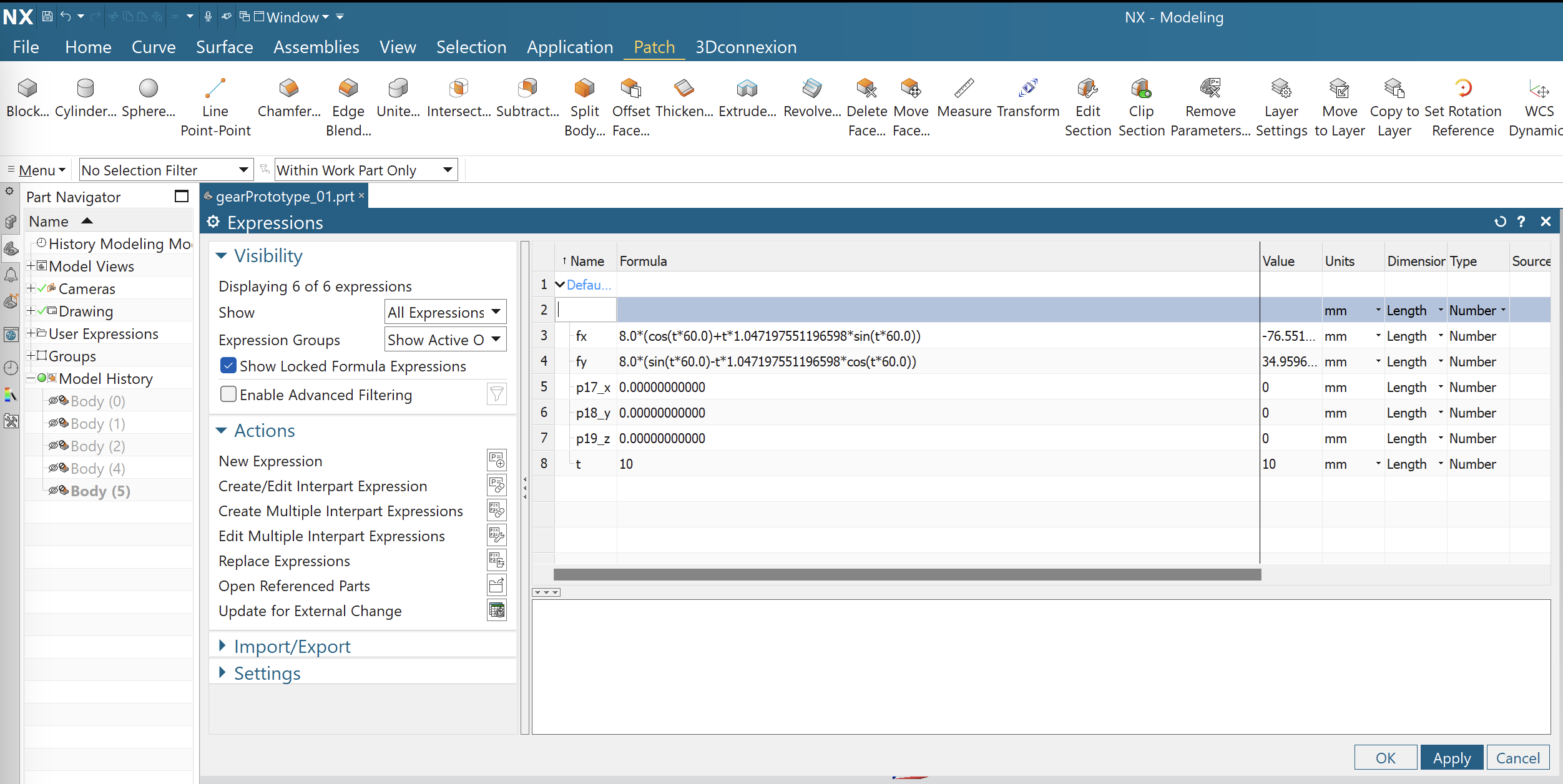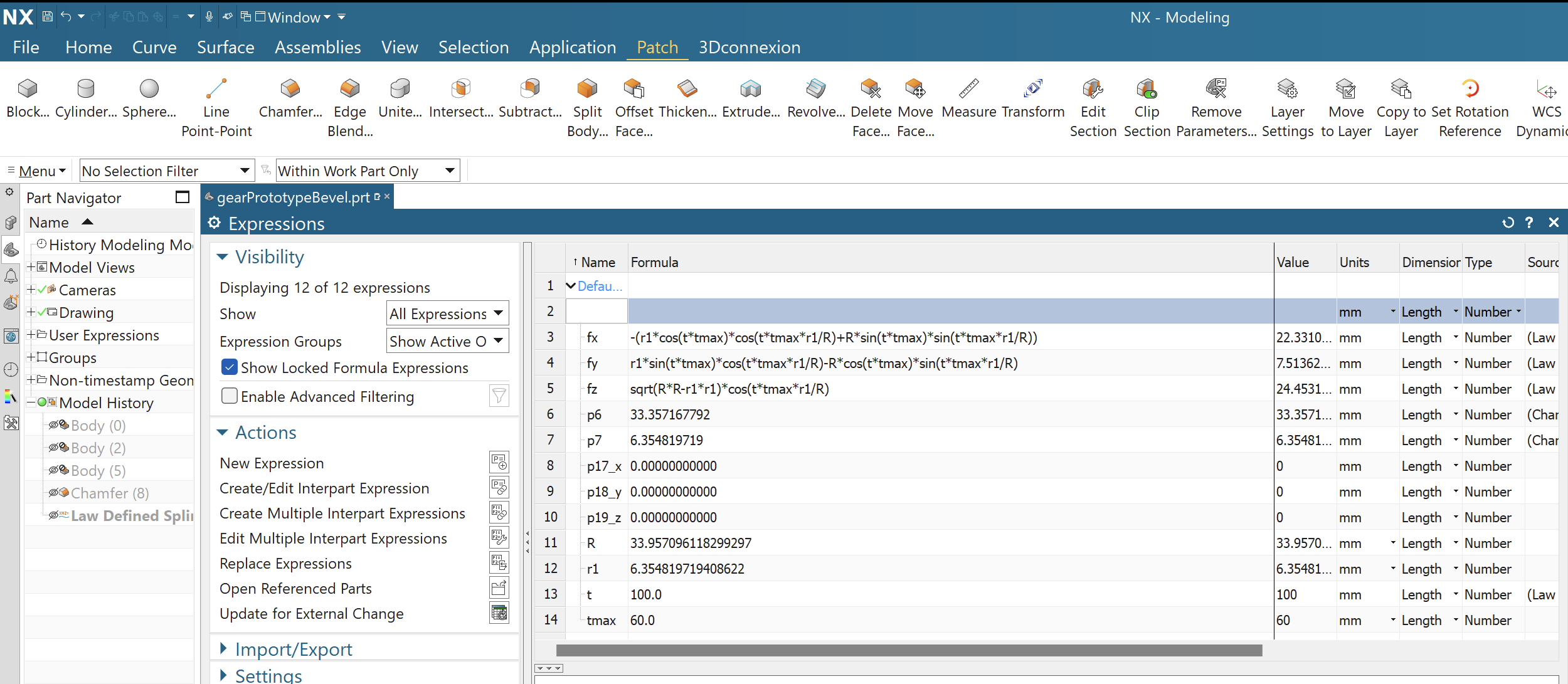 We get this curve into CAD using the same process as before. Here’s the expressions panel in NX.